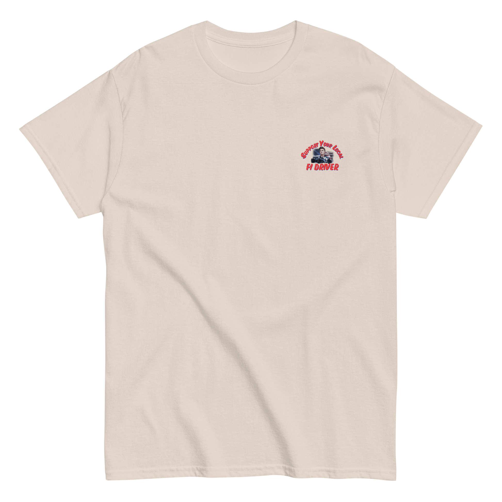 Embrace the thrill of Formula 1 and showcase your pride for American racing talent with our exclusive "Support Your Local F1 Driver" tee, celebrating Williams Racing's star, Logan Sargeant. This 100% cotton men's classic tee is a must-have for any dedicated F1 enthusiast, especially those cheering for America's own F1 prodigy.